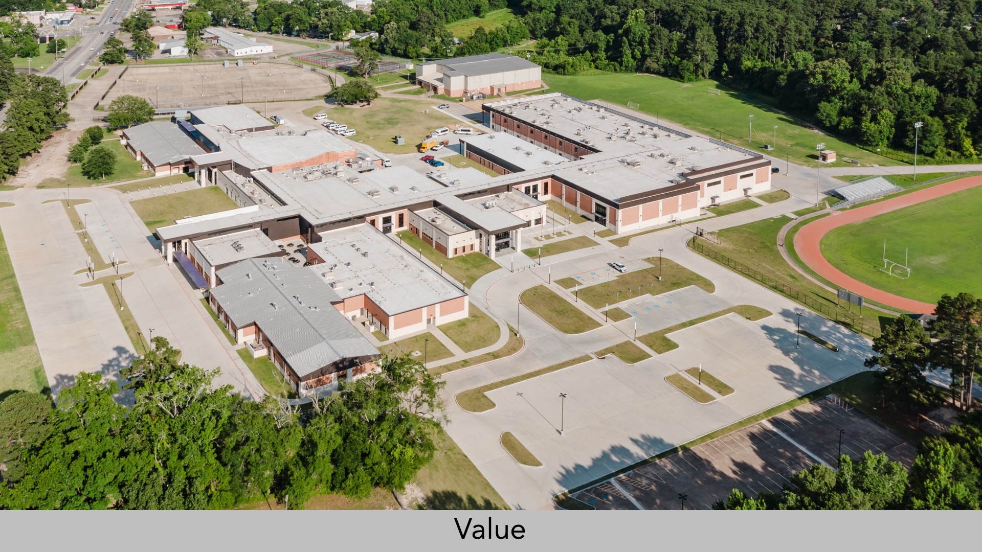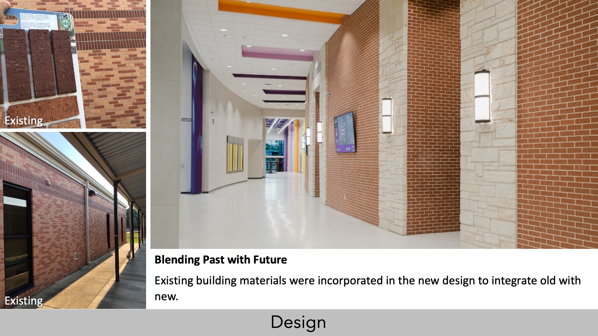 Four retained buildings were renovated to match the new aesthetic, using modern materials alongside existing brick to blend history with innovation. The design also gives priority to creating a cohesive campus identity with vibrant school colors and branding, absent in the old campus, to boost engagement and school pride. The well-planned design delivered an inspiring facility that is a secure and safe place for students to thrive.”