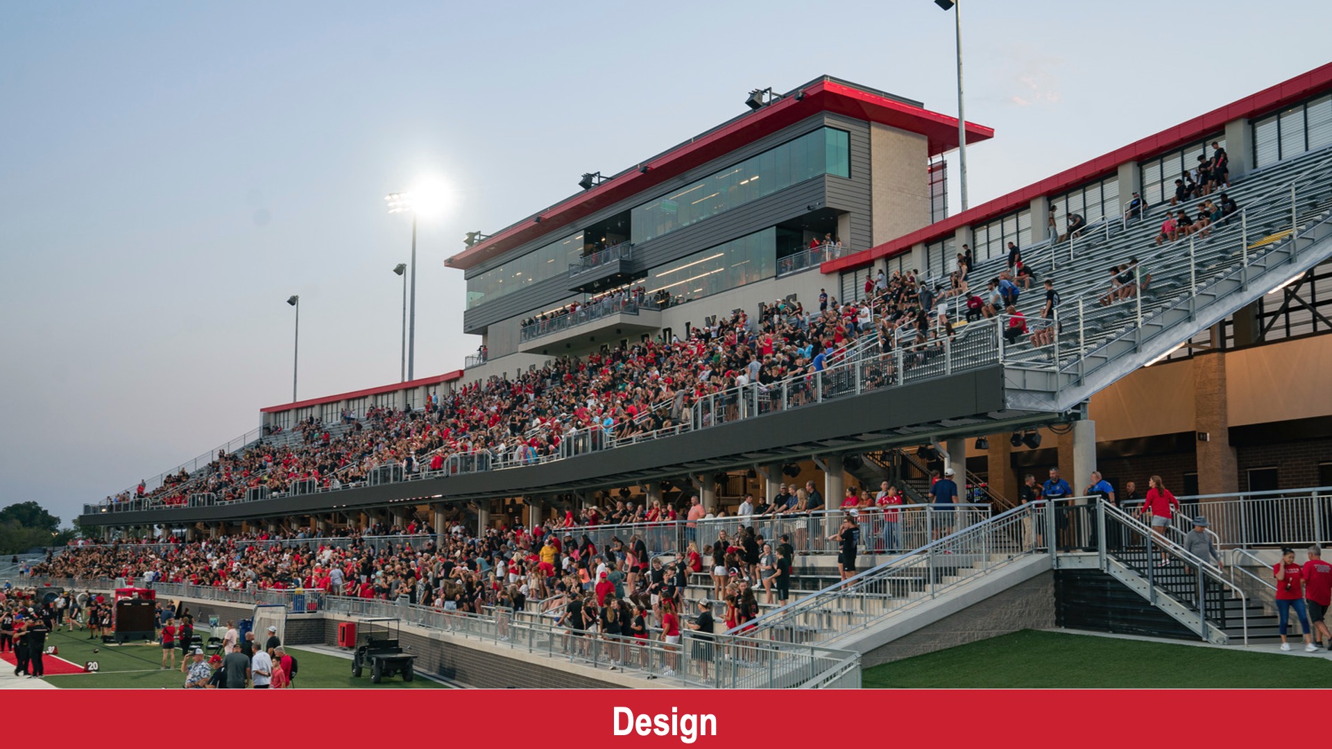Press Box & Community Spaces: The five-story press box offers a community room with seating for 200, dedicated spaces for media, coaches, and game operations, and a Hall of Fame area at ground level to showcase the district’s athletic achievements.
