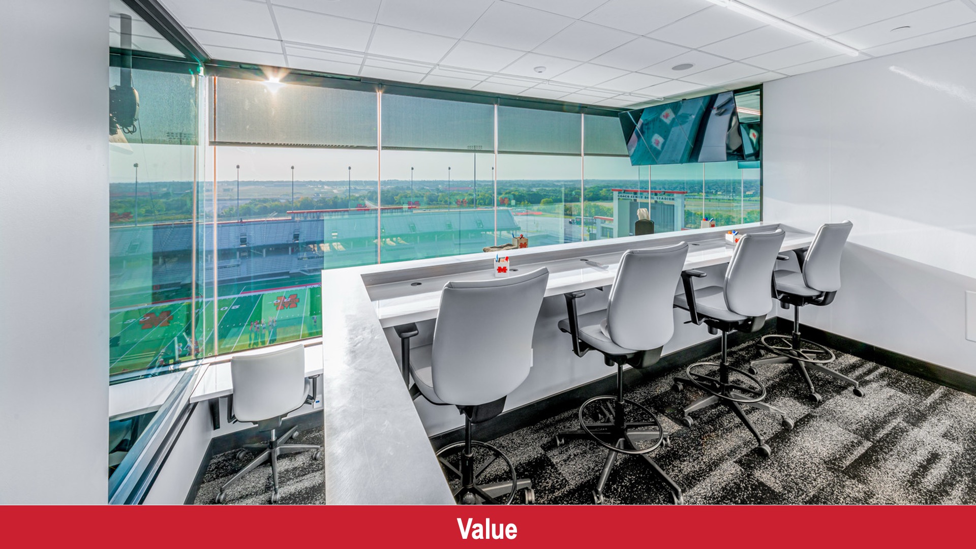 Coach Kenny Deel Stadium is a landmark for the Melissa community. It integrates educational spaces in the interstitial second and third levels and a Broadcasting room that allows CTE students to gain hands-on learning opportunities in sports media and broadcasting.