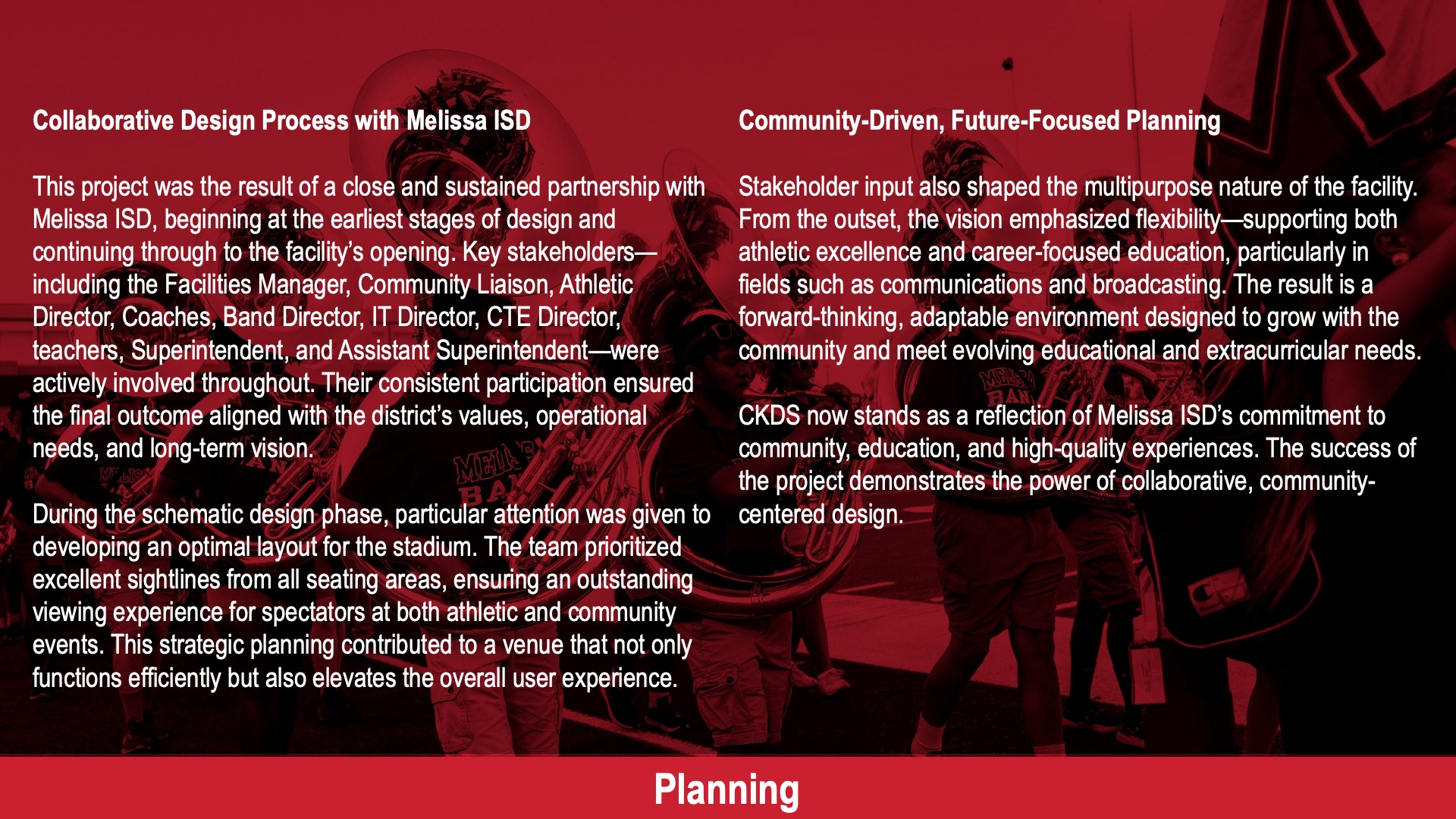 CKDS now stands as a reflection of Melissa ISD’s commitment to community, education, and high-quality experiences. The success of the project demonstrates the power of collaborative, community-centered design.”