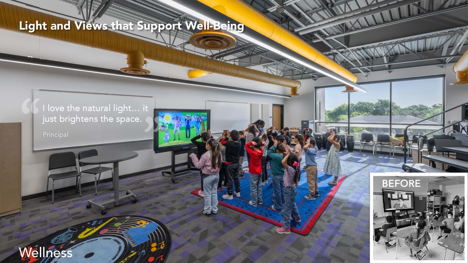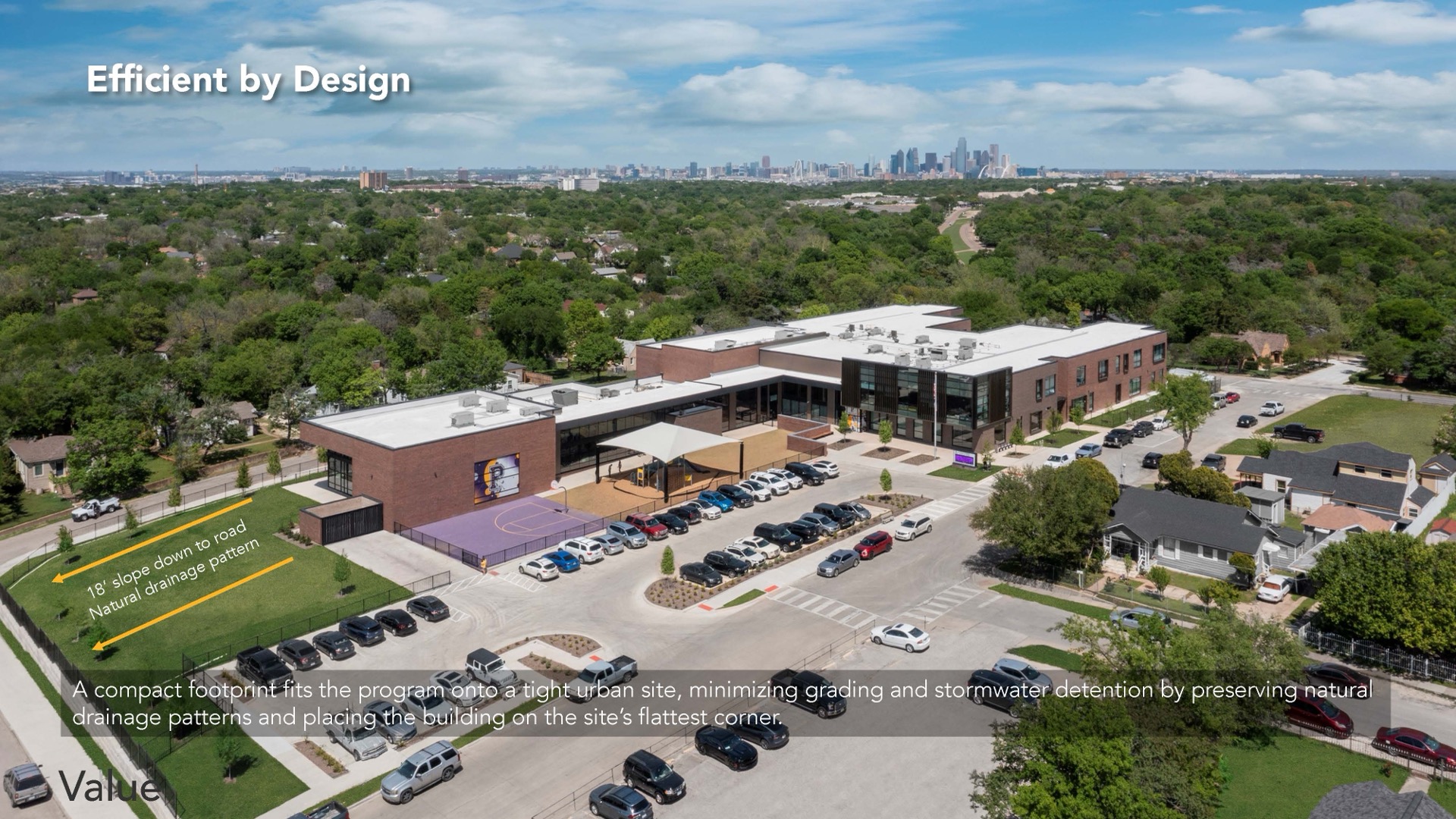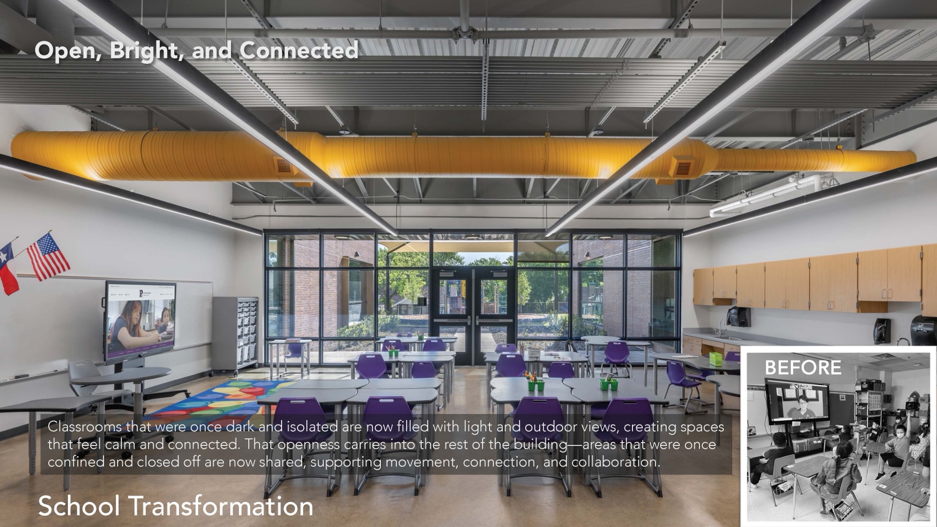 Replacing a century-old school meant more than new construction—it meant carrying forward identity. In Oak Cliff, Peabody was a constant. Despite pandemic-era challenges and a compact site, the new design delivers a light-filled, transparent campus that blurs indoor and outdoor boundaries, blends into the neighborhood, and offers a new home to future generations.”