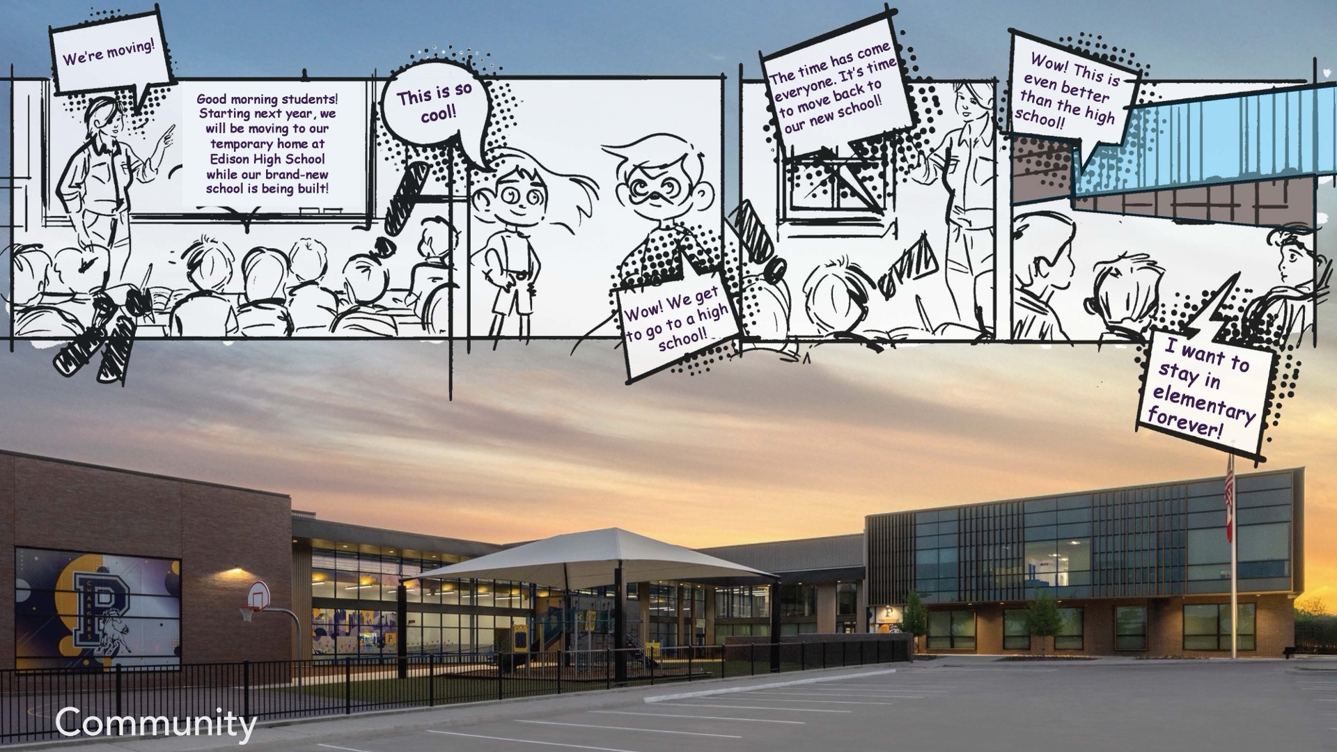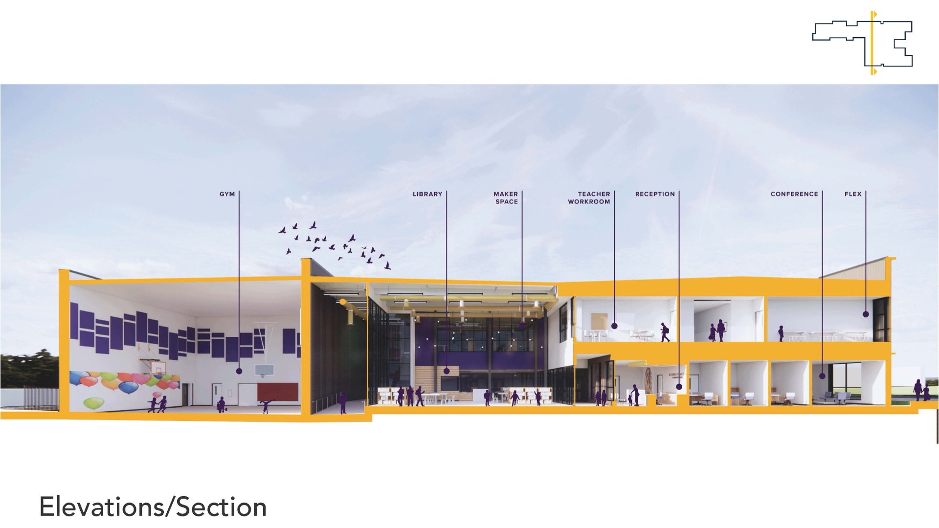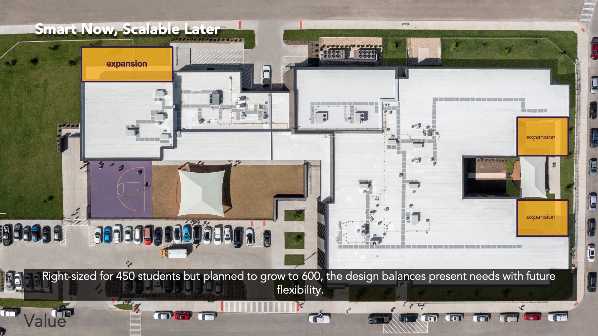 Virtual charrettes launched the planning process, gathering input from district leaders, educators, and community members to define shared goals. The result is a compact, flexible campus shaped by a custom enrollment model, strategic site use, and long-range thinking. Every decision—from layout to scale—supports current educational needs while anticipating the neighborhood’s growth and evolving priorities.