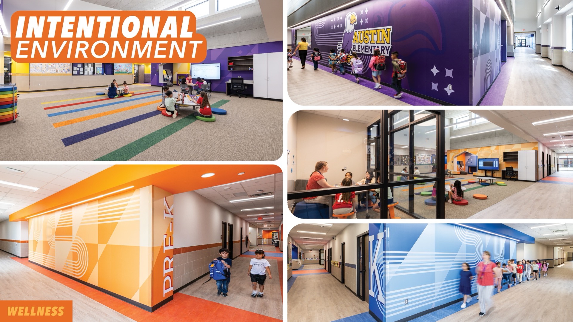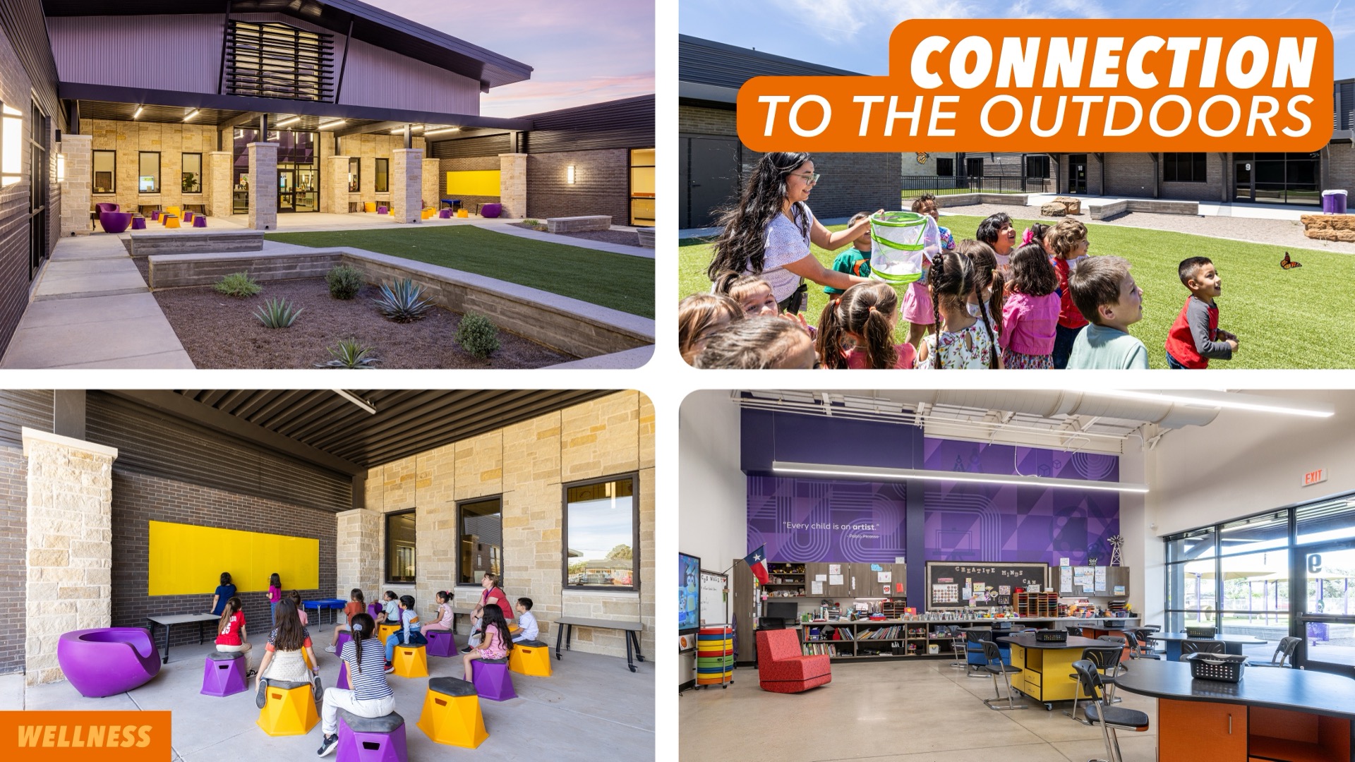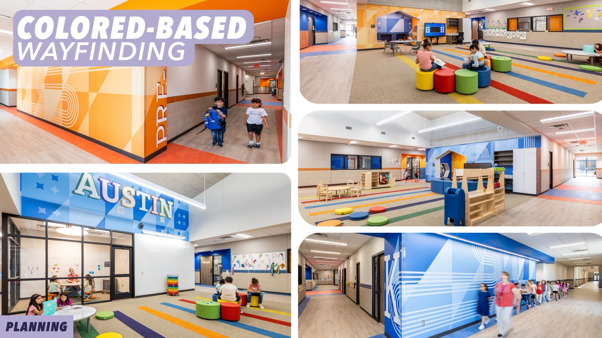 From the early planning phase, district leaders, teachers, families, and city officials collaborated through an intentional process to design an early childhood campus focused on creating a safe, inspiring, and developmentally appropriate environment, carefully tailored to the needs of young learners and thoughtfully scaled to support their small stature and overall development. Every design decision supported their well-being, incorporating intuitive wayfinding, active outdoor spaces, and a single-level layout that promotes safety and belonging. Each grade-level pod features its own distinct colors and playful graphics, intentionally designed to help the littlest of learners navigate their surroundings with confidence and ease. Flexible teaching spaces, secure outdoor courtyards, and built-in discovery zones encourage movement, curiosity, and joyful play. This collaborative, student-focused approach shaped a vibrant campus that inspires a lifelong love of learning.