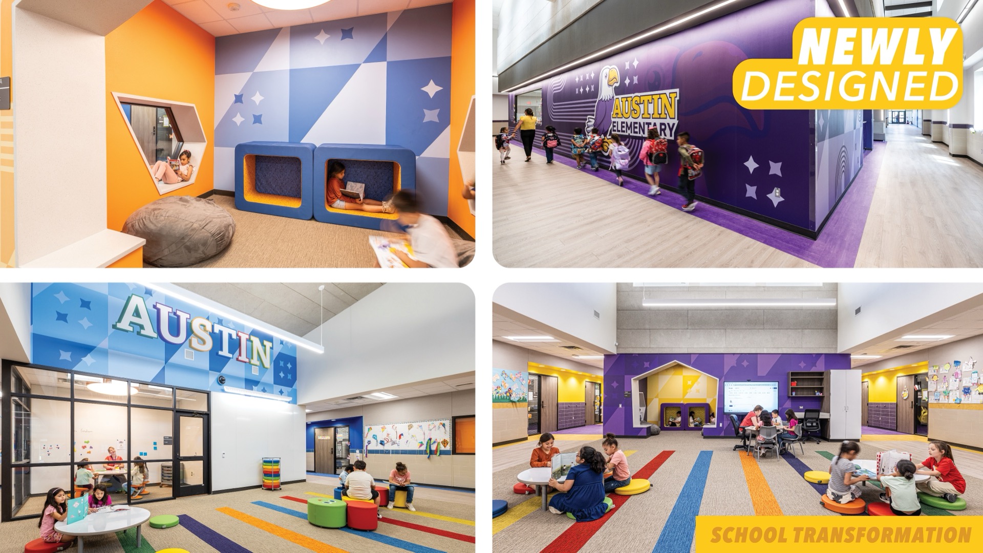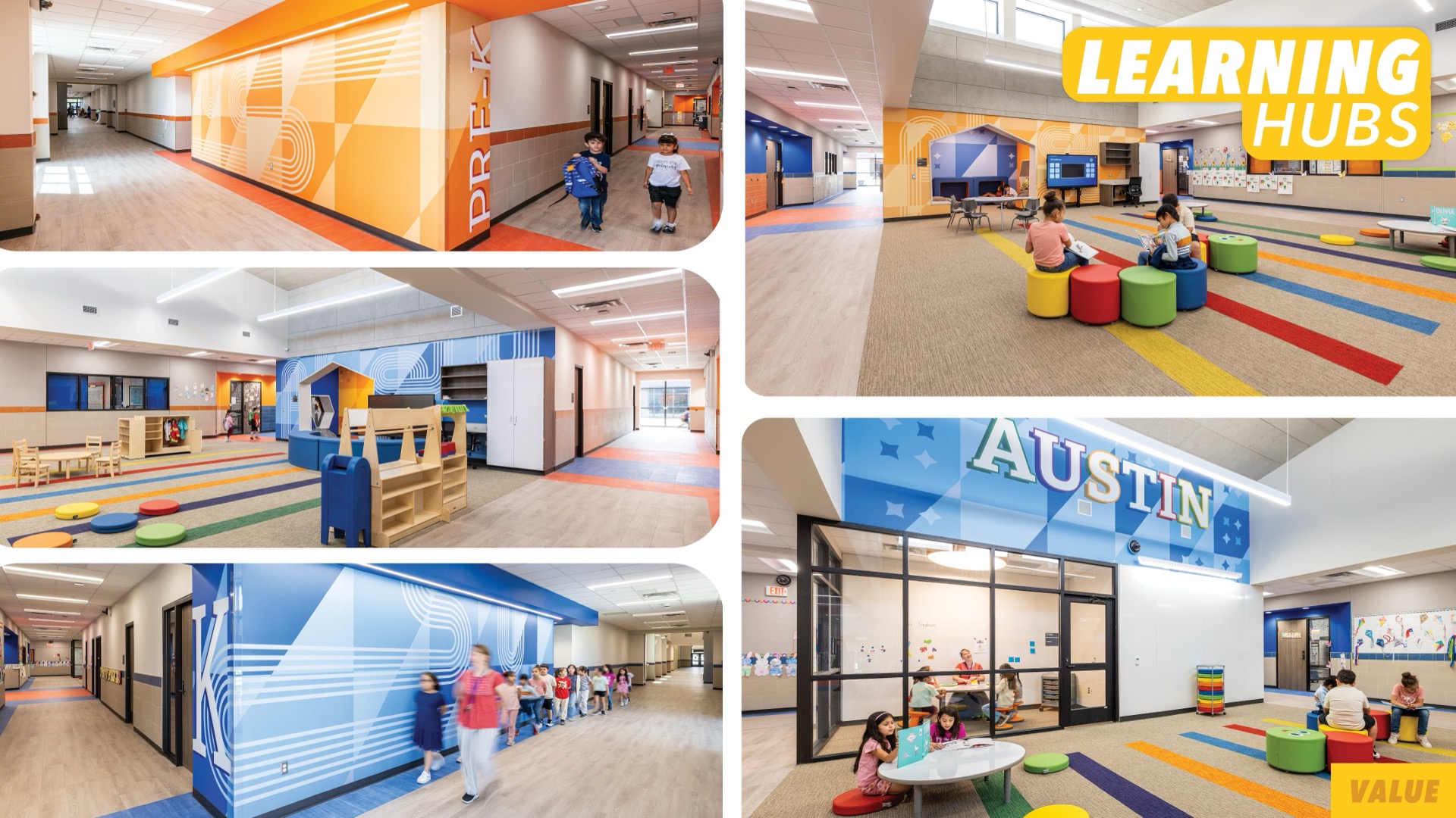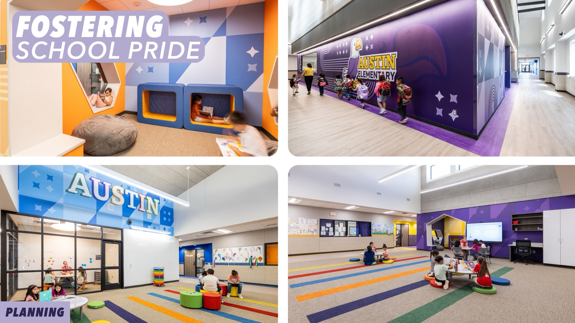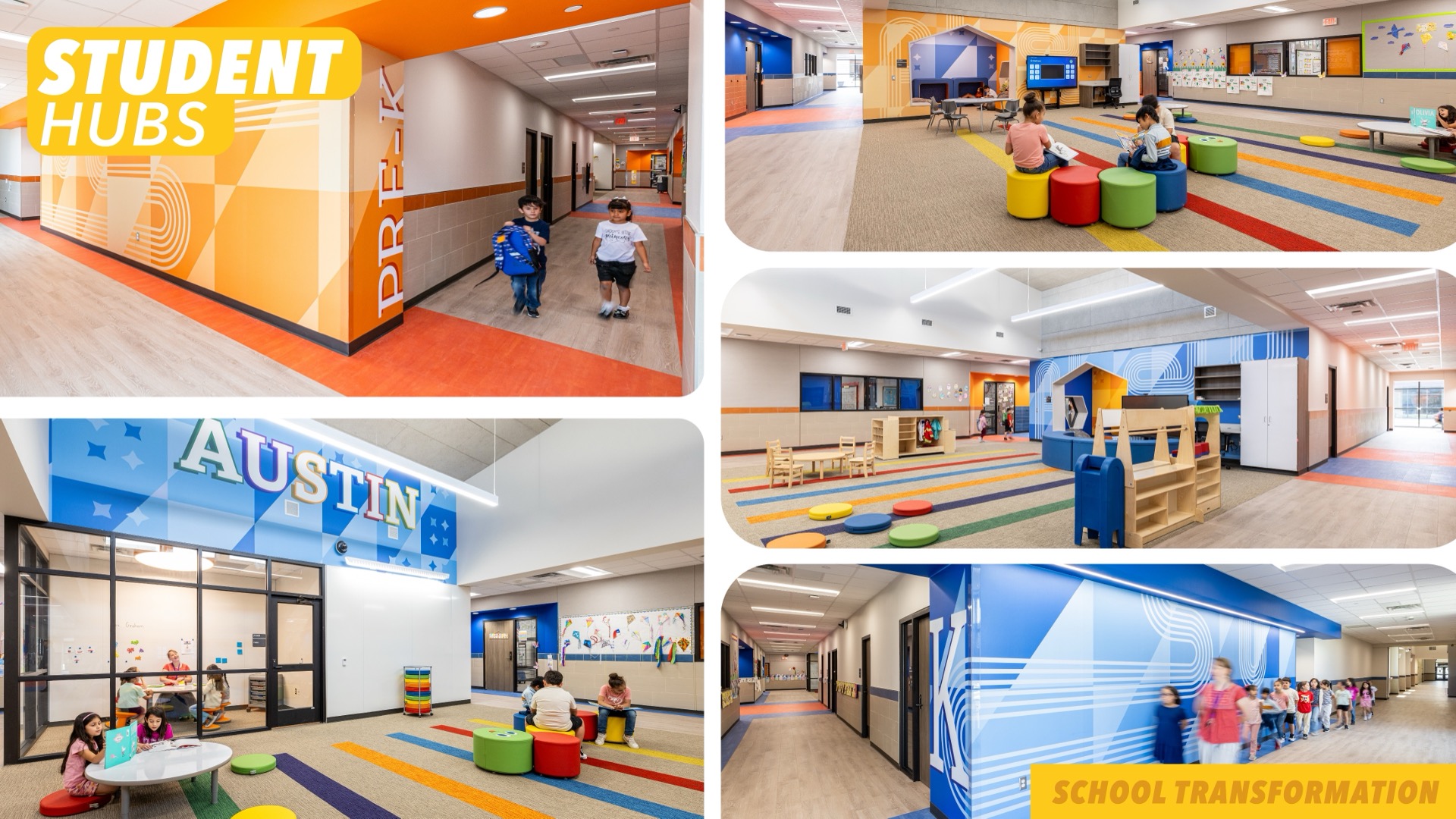 From the early planning phase, district leaders, teachers, families, and city officials collaborated through an intentional process to design an early childhood campus focused on creating a safe, inspiring, and developmentally appropriate environment, carefully tailored to the needs of young learners and thoughtfully scaled to support their small stature and overall development. Every design decision supported their well-being, incorporating intuitive wayfinding, active outdoor spaces, and a single-level layout that promotes safety and belonging. Each grade-level pod features its own distinct colors and playful graphics, intentionally designed to help the littlest of learners navigate their surroundings with confidence and ease. Flexible teaching spaces, secure outdoor courtyards, and built-in discovery zones encourage movement, curiosity, and joyful play. This collaborative, student-focused approach shaped a vibrant campus that inspires a lifelong love of learning.